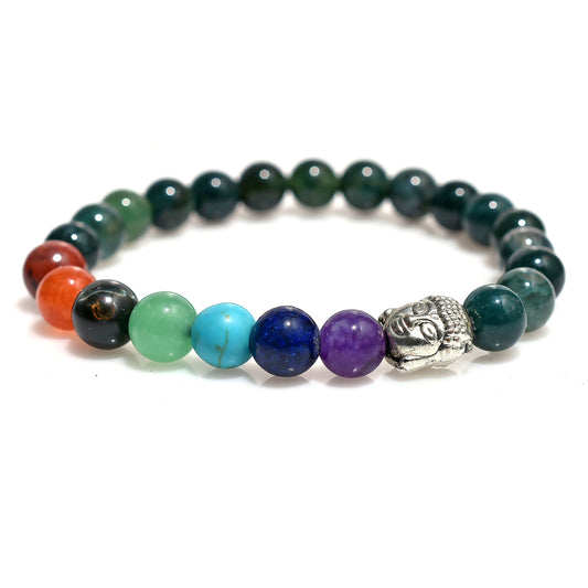 7 Chakra Gemstone Stretchable Bracelet with Buddha Charm | Healing Energy Jewelry