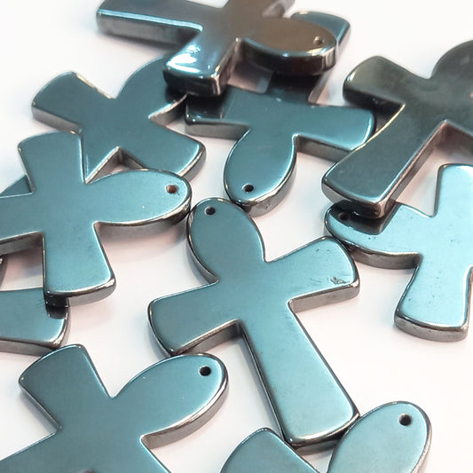 Gunmetal Cross Drill Gemstone Pendant - Wholesale Crucifix Charms, Christian Jewelry for Necklace Making, Loose Pendants For Religious Gift
