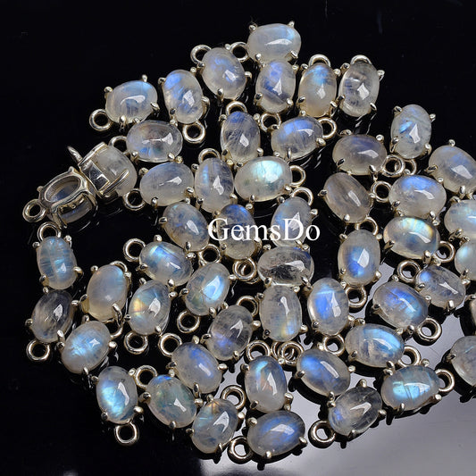 Rainbow Oval Moonstone 925 Silver Charms, Wholesale Natural Moonstone Pendant 0.64 Carat