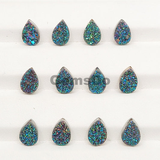 Golden Titanium Coated Druzy Cabochons, 6x9mm Pear Shape Green Titanium Coated Druzy, Pink Titanium Druzy Cabochon, Wholesale Gemstones