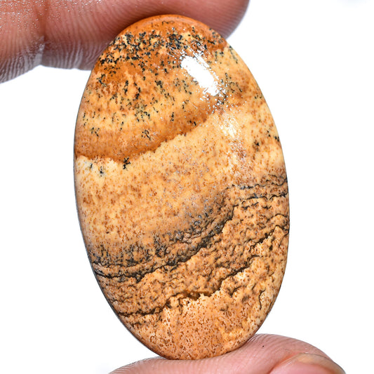 Exquisite Picture Jasper Gemstone – Designer Oval Cabochon, Rare Loose Crystal for Custom Pendants