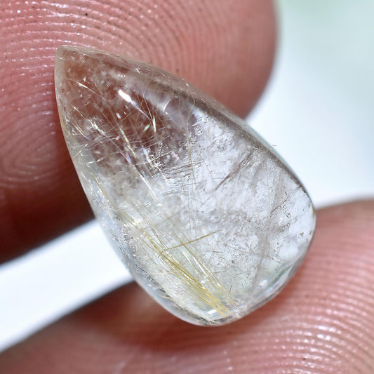 Natural Pear Rutile Quartz – Golden Rutile Small Cabochon for Rings & Jewelry