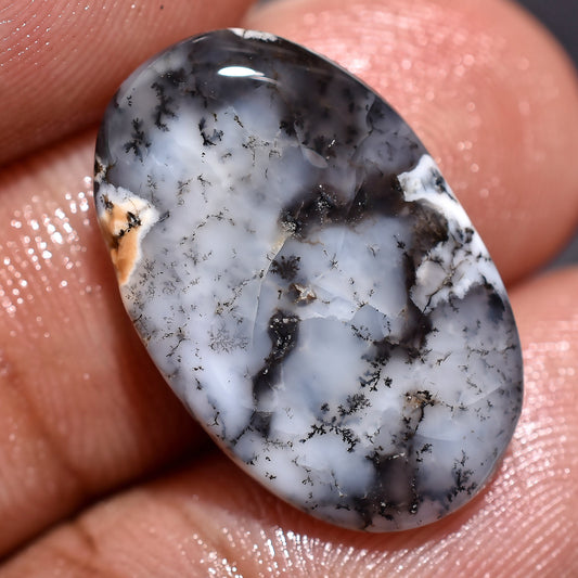 Dendrite Agate Cabochon – Oval Shape Black & White Opal Gemstone