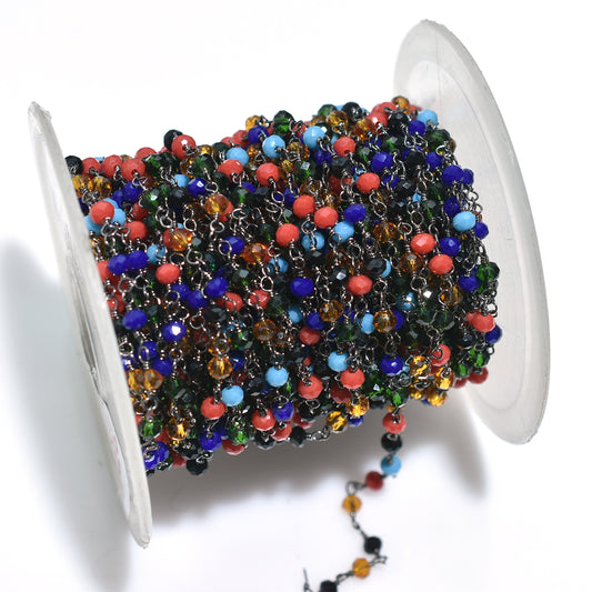 Color Splash Hydro Beaded Rosary Chain – Black Metal Plated Gemstone Links For DIY Jewelry