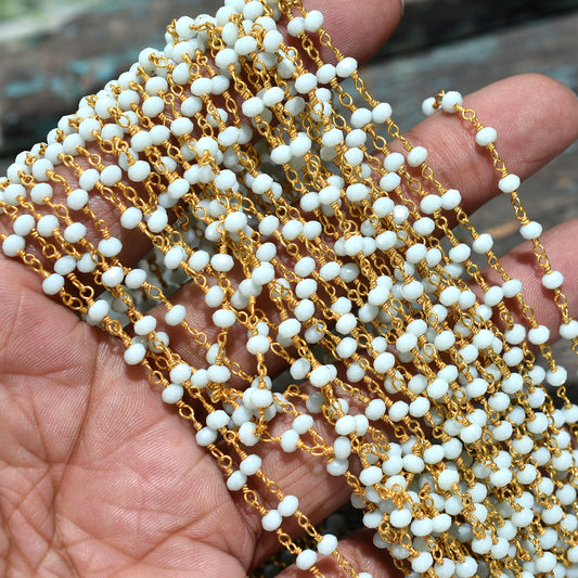 Delicate Peru Opal Beaded Rosary – Wholesale Gold Plated Linking Chain for Crafting