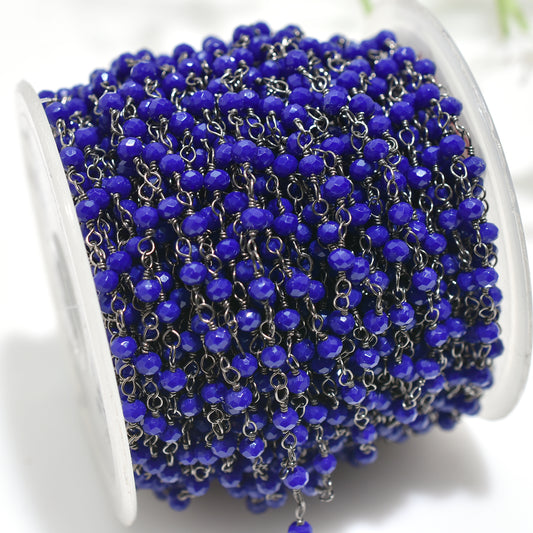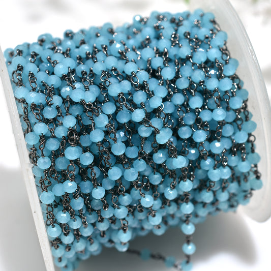Blue Topaz Hydro Rondelle Rosary Chain Wire Wrapped Black Metal Plated Stone Beaded Chain for Jewelry Making