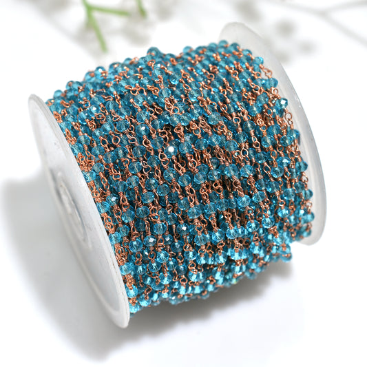 Elegant Blue Topaz Hydro Beaded Rosary Chain - Wholesale Rose Gold Metal Tiny Stone Linking Chain Lot
