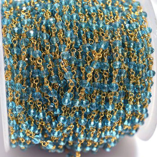 Handmade Blue Topaz Hydro Rondelle Rosary Chain Gold Plated Wire Wrapped Beaded Chain For Stone Jewelry
