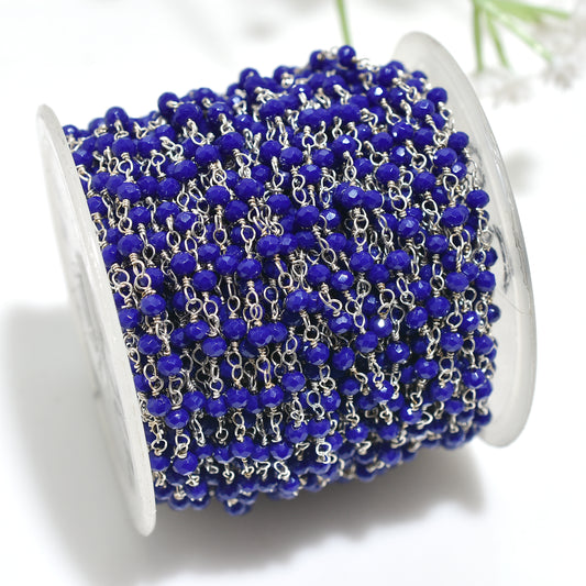 Artisan Blue Topaz Hydro Rosary Chain-Wholesale Silver Wire Stone Linking Chains For Jewelry Making