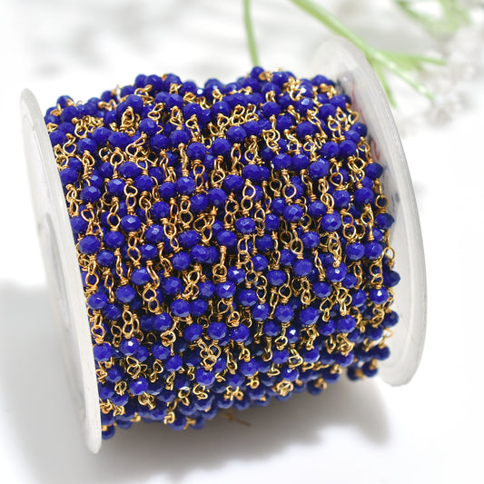 Natural Lapis Lazuli Golden Plating Rosary Chain-Handmade Gemstone Beaded Supplies