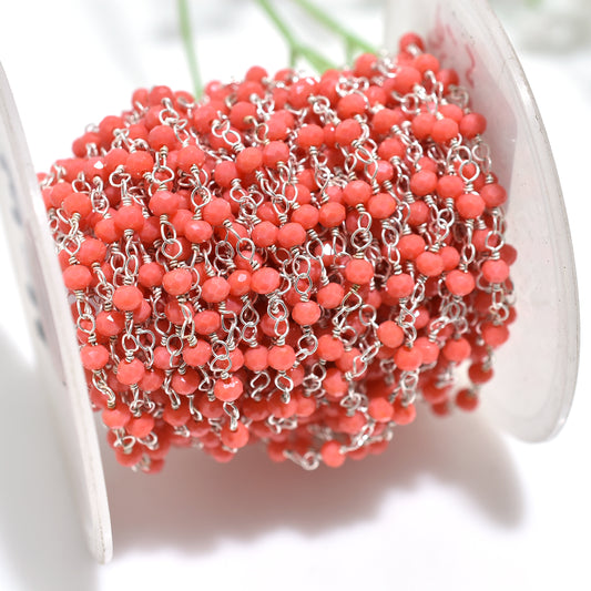 Ocean-Inspired Orange Coral Rosary - Wholesale Silver Plating Linking Chains for Designer Stone Jewelry