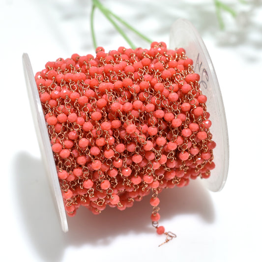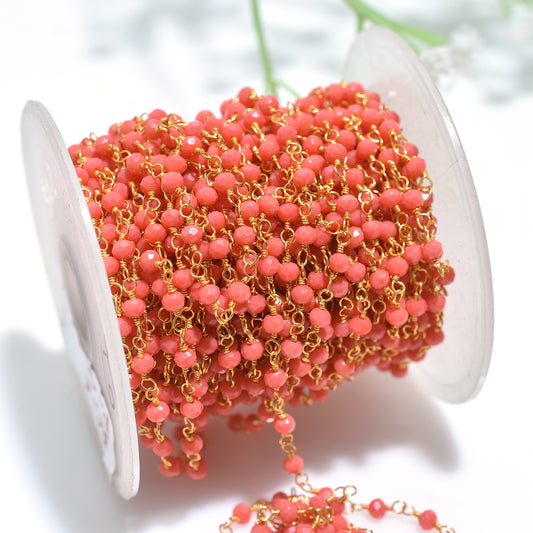 Orange Coral Golden Plating Rosary Chains-Wholesale Stone Beaded Linking Connector Chain lot