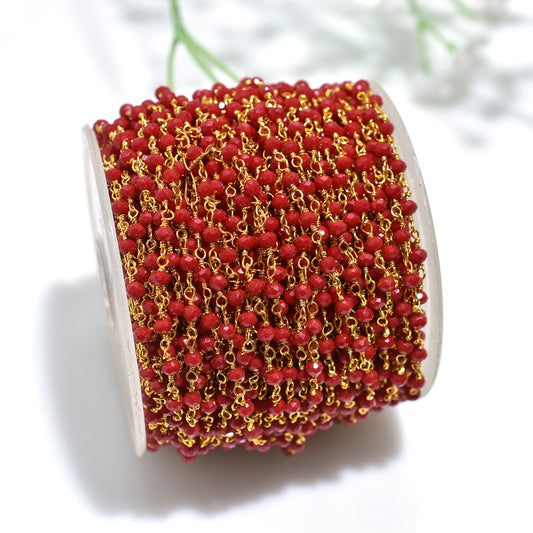 Handmade Red Onyx Hydro Faceted Gemstone Beads Rosary Chain Wholesale Beaded Linking Chains For Jewelry Making