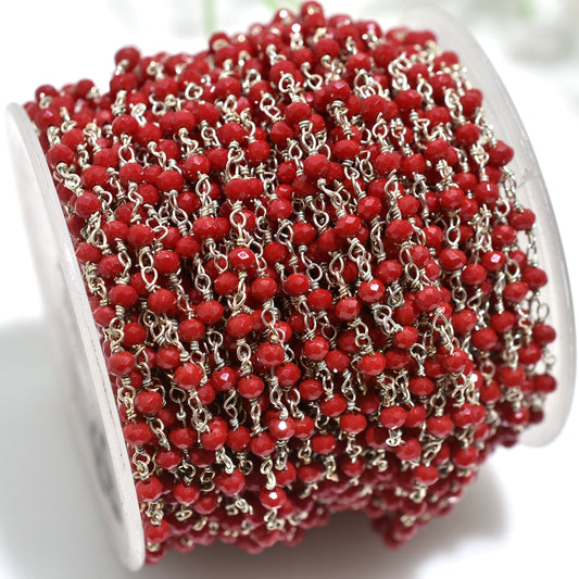 Radiant Red Onyx Hydro Faceted Gemstone Beads Rosary Chain Wholesale Silver Plated Links for Crafts