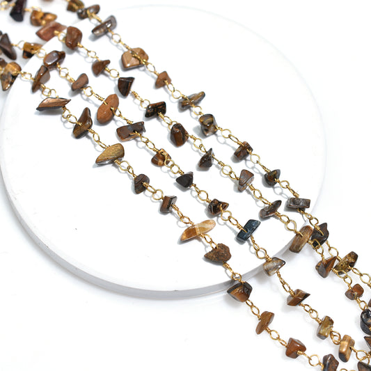 Raw Tiger Eye Stone Rosary - Golden Earthy Beads Wire Wrapped For Craft Supply Lot