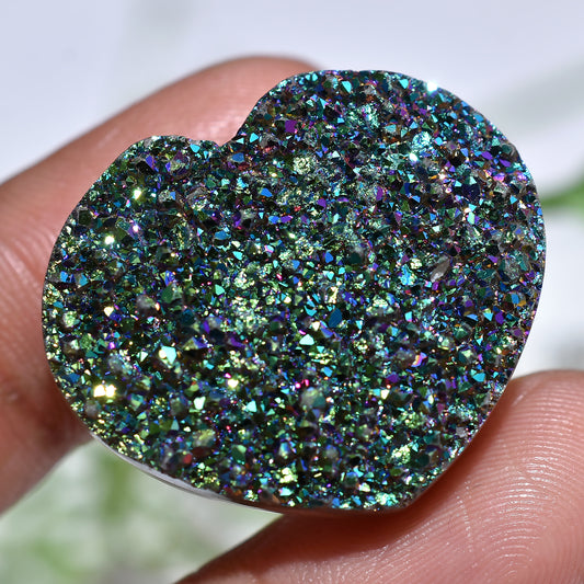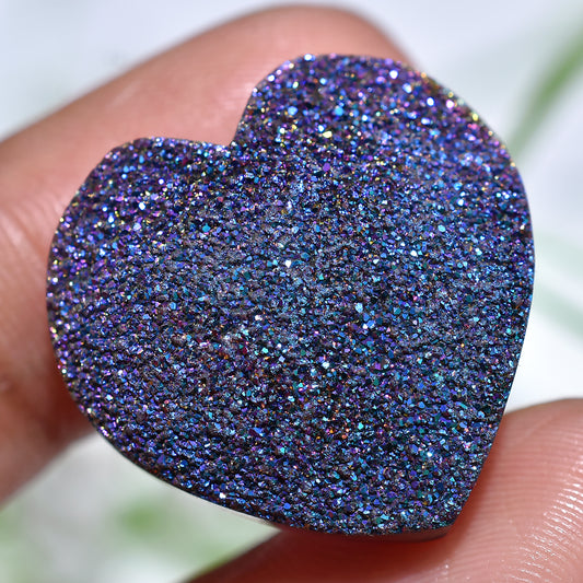 Mystic Titanium Druzy Heart – Shiny Geode Crystal Gemstone for Spiritual Healing (24x28x5mm,/50ct)