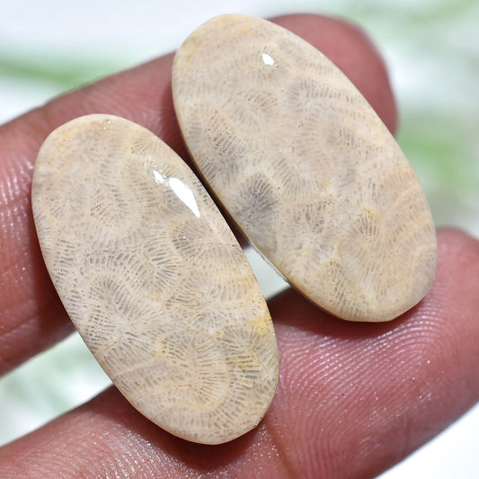 Handmade Fossil Coral Cabochon Pair – Perfect for Jewelry Making