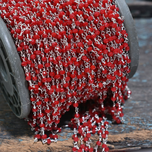 Elegant Red Coral Rosary Chain - Wholesale Silver Plating Gemstone Beads For Craft Supply