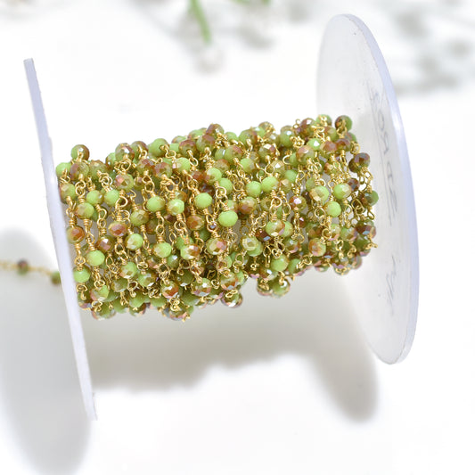 Serene Green Opal Hydro Stone Beads Rosary – Silver Coated With Gold Plated Linking Chain for Jewelry Designs