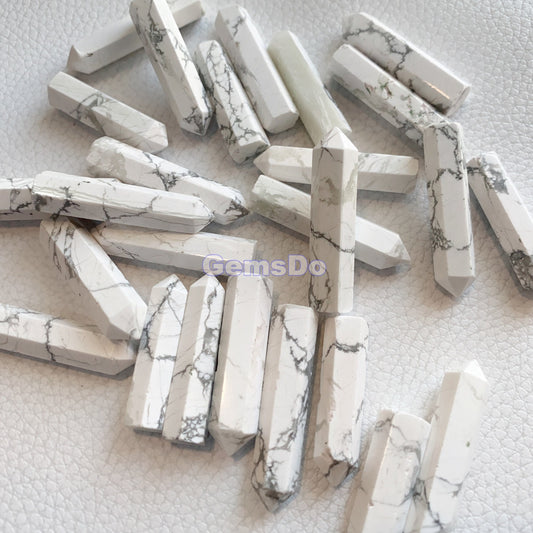 Bulk Lot White Howlite Pointed Crystal – Faceted Tower Gemstone Obelisk Wands (28-40 mm)