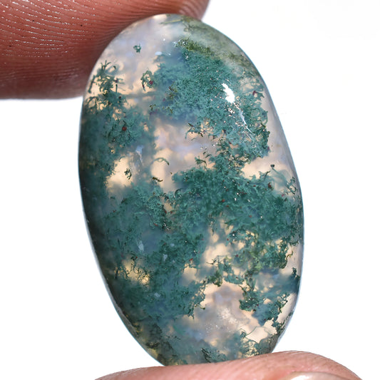Moss Agate Cabochon - Lush Green Oval Gemstone
