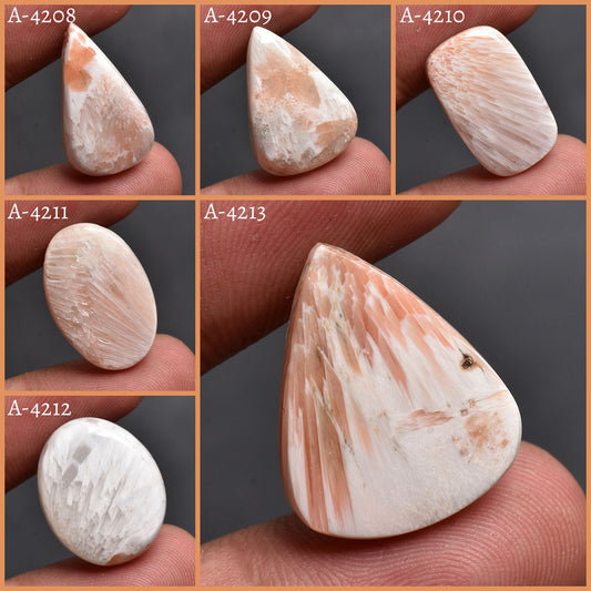 Natural Peach Scolecite Cabochons, Wholesale Designer Gemstones for Jewelry Making