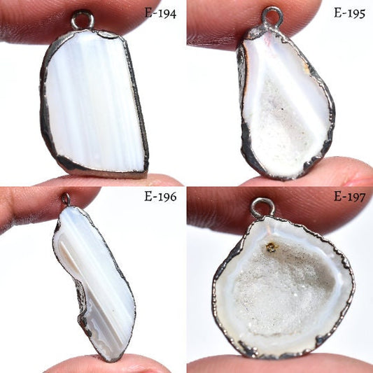 Natural White Agate Druzy Pendant Charms - Black Plated Edge, Stalactite Agate Jewelry Supplies