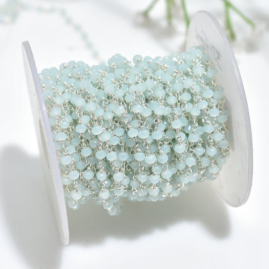 Attractive Silver Plated Chalcedony Rosary Chain - Bulk Aqua Stone Bead Strand Lot for Jewelry Making