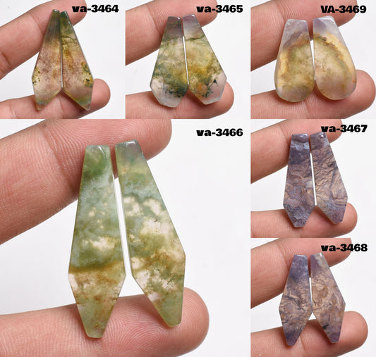 Attractive Moss Agate Pair Cabochon - Green Gemstone for Earrings