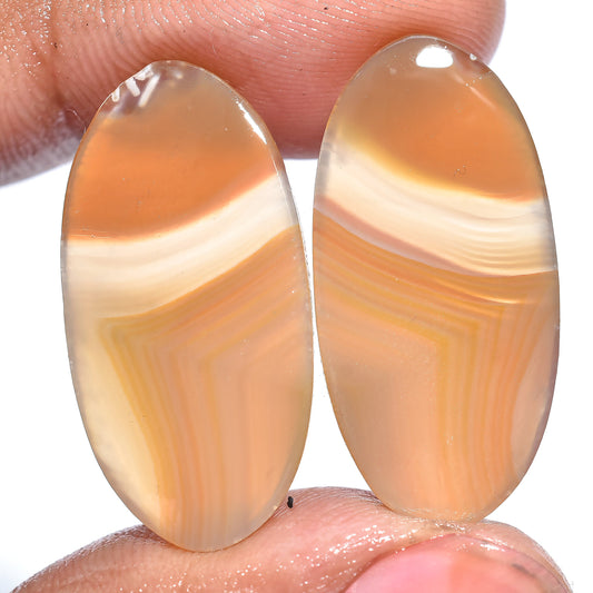 Attractive Orange Agate Gemstone Pair - Oval Matched Loose Stones for Earrings