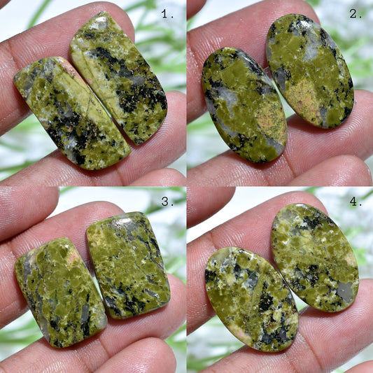 Attractive Unakite Pair - Smooth Handmade Green Jasper for Earrings