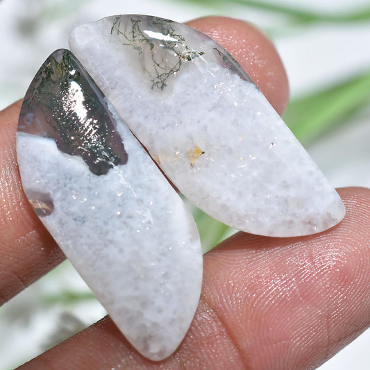 Attractive! Moss Agate Pair Cabochon, Fancy Shaped Agate Smooth Matched Pair, Wholesale Flat Back Crystals For Jewelry, Pendant Making Gems