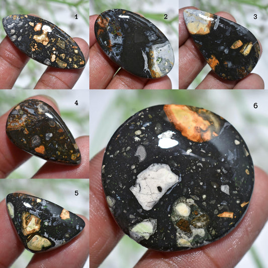Beautiful Black And Yellow Textured Maligano Jasper Gemstone Cabochon