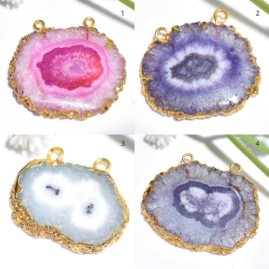 Purple Agate Double Connectors - Gold Electroplated DIY Jewelry Supplies
