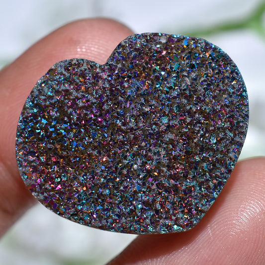 Rainbow Titanium Druzy Heart – Sparkling Crystal Gemstone for Jewelry (23x30x6mm,/38ct)