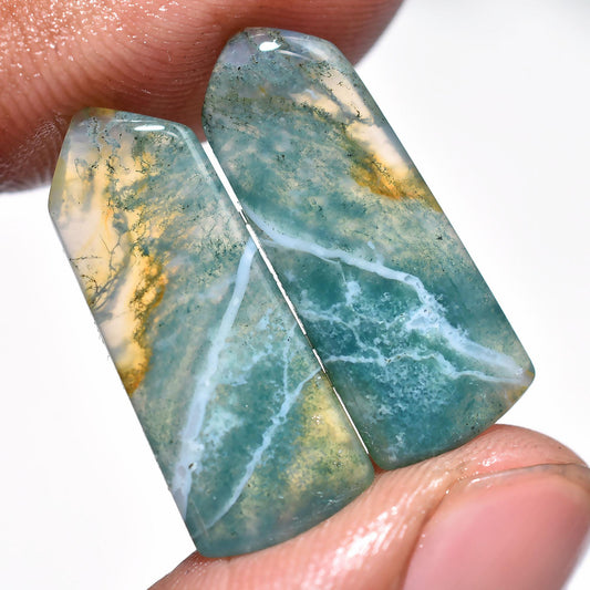 Rare Moss Agate Earrings Pair - Fancy Shaped Matching Set for Jewelry Making