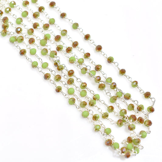 Soft Green Opal Silver Coated Hydro Stone Beads Rosary Chain – Silver Plated Links Beauty for Custom Jewelry Projects