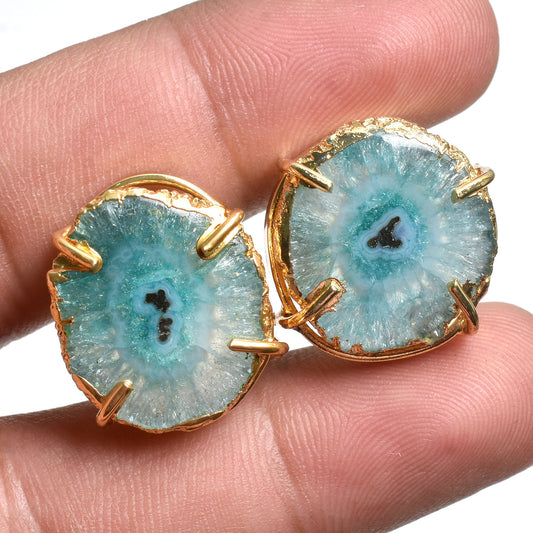 Solar Quartz Gemstone Earrings & Window Druzy Slice Wholesale Pairs