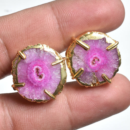 Sparkle Pink Agate Druzy Earring Pairs - Fancy Solar Quartz Gemstones