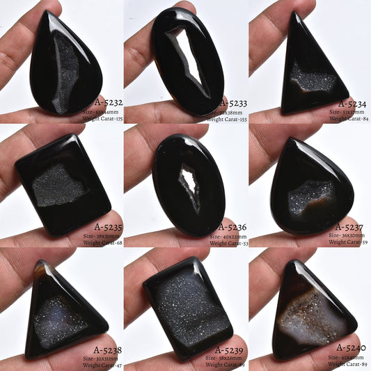 Sparkling Black Window Druzy Cabochon - Mix Shaped Gemstone