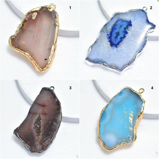Solar Quartz Pendant – Fancy Brown Blue Druzy Gemstone Slice for DIY Jewelry