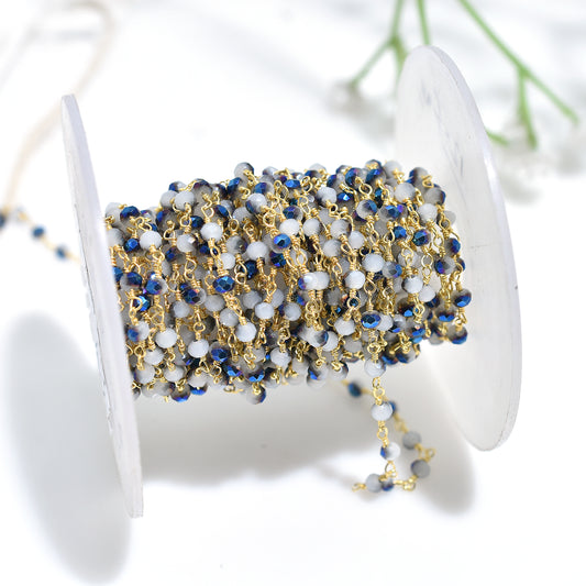 Sparkling Blue Chalcedony Rosary Golden Plating Chain - Wholesale Silver Coated Stone Beads Lot