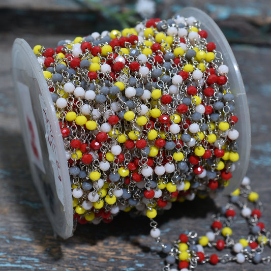 Spectrum Multi-Color Hydro Faceted Beaded Rosary With Silver Plated Linking Chain for Crafting