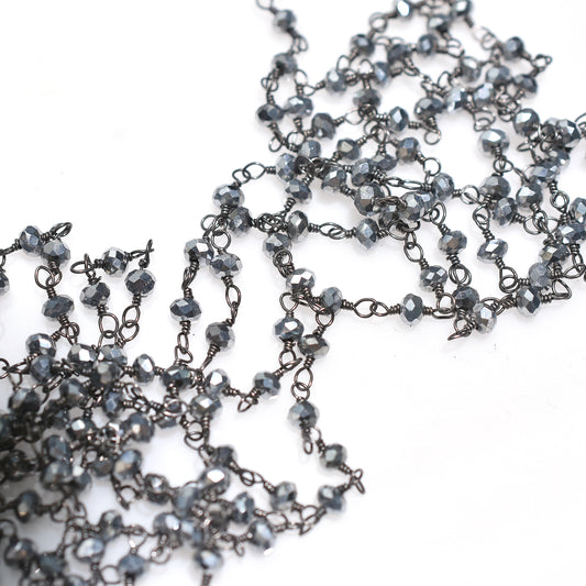 Sparkling Pyrite and Hydro Rosary - Wholesale Black Plating Gemstones Linking Chain for Crafts