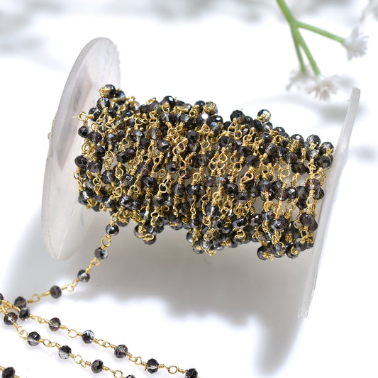 Stunning Mystic Topaz Golden Plating Rosary - Rainbow Gemstone Hydro Beads Chain Lot For Craft Supply