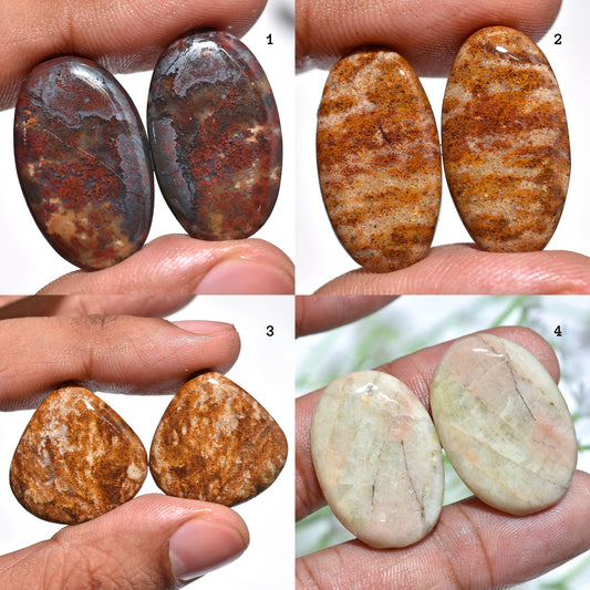 Stunning Mix Jasper Oval Pair – Smooth Polished Gemstones for Jewelry Crafting