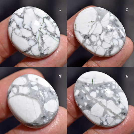 Top Quality White Howlite Cabochon - Oval Flat Back Stone for Jewelry & Pendants