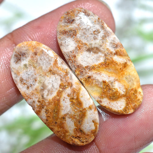Top Quality Oval Cabochons for Earrings, Moss Agate Stone Pair