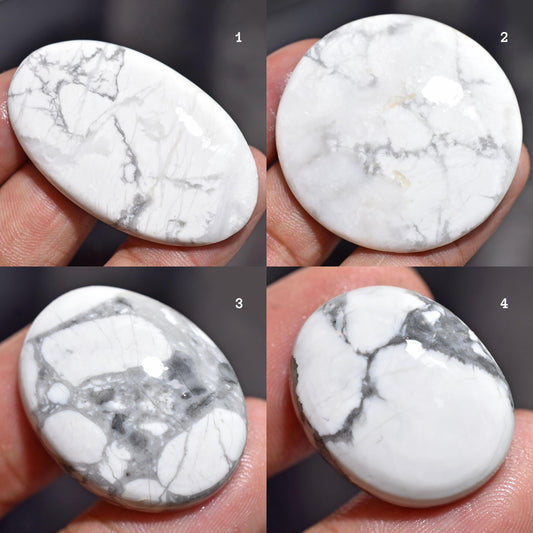 Top-Quality White Howlite Cabochons, Polished Smooth Flat Back Gemstone.