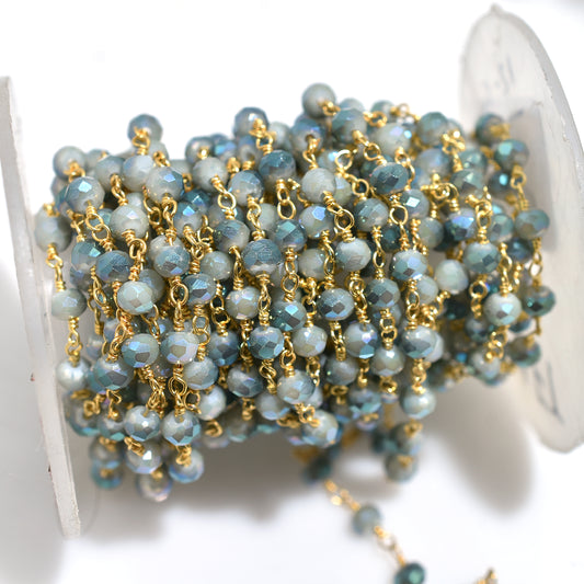 Trending Chalcedony Mystic Coated Hydro Bead Chain - Wholesale Gold Plating Rosary Style Gemstones